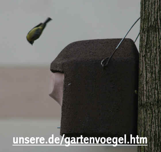 Dieser Nistkasten war eigentlich für Kohlmeisen vorgesehen, aber die Blaumeisen waren fixer.